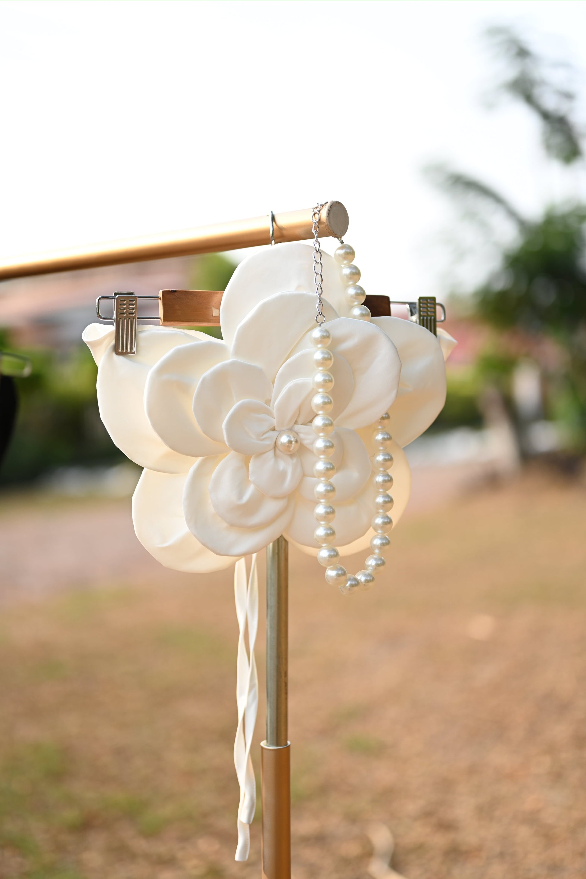 Now sold separately our Gardenia blouse features a stunning floral top with chunky pearl necklace detail, and can be paired with sleek black high waist trousers… a skirt or even a pair of denim!