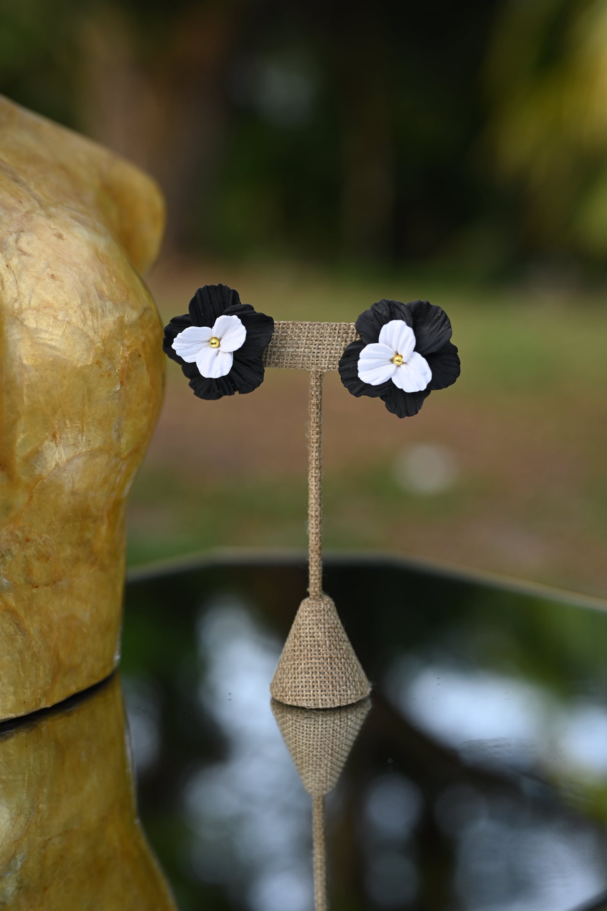 Add a playful pop of style to any outfit with our Little Miss Earrings. The black and white multi-layered hibiscus design is expertly handcrafted, making each pair unique. The miniature posts are easy to wear, making these fun and artisan earrings perfect for everyday wear.